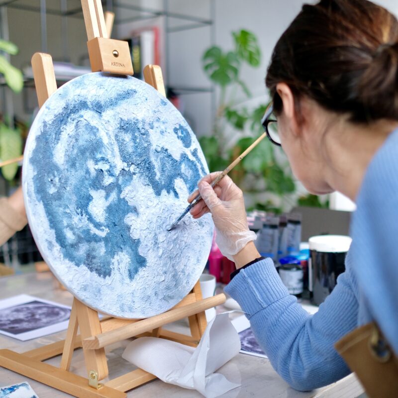 Ognuno potrà dipingere la propria Luna in totale libertà creativa, guidato dall’esperienza dell’artista e dai consigli condivisi lungo il percorso.
