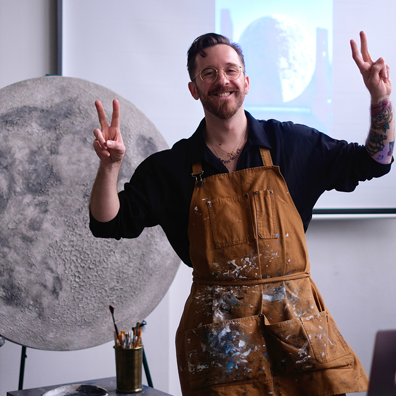MOON Experience, l’Art workshop con l’artista della Luna Luca Ballestra, ti guida in un viaggio creativo unico dove imparerai a dipingere direttamente con la sua personale tecnica, un approccio innovativo che affascina tanto nel panorama artistico quanto nell’universo del design. È un’esperienza che permette ai partecipanti di creare la propria Luna, di apprendere direttamente dall’artista non solo le abilità tecniche, ma anche la filosofia, l’approccio al colore, alla composizione e al modo di affrontare il proprio processo creativo esprimendo la propria visione della Luna attraverso tonalità delicate come i grigi, i bianchi, il lilla e il blu. Queste esperienze immersive non solo svelano i segreti del mestiere, ma stimolano anche la fantasia promuovendo nuove visioni e diventando un’occasione preziosa per lasciarsi ispirare e crescere sia a livello artistico sia professionale.